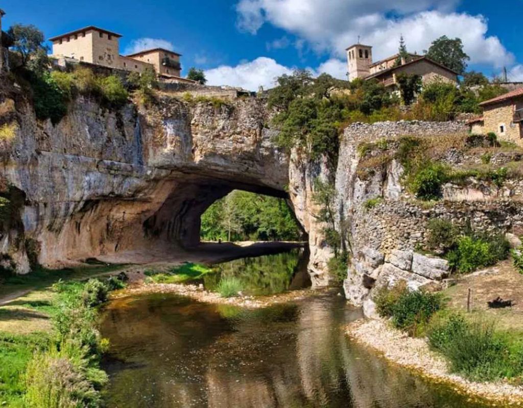 Un pueblo construido literalmente sobre un puente de piedra natural excavado por el río Nela. Sencillamente espectacular.