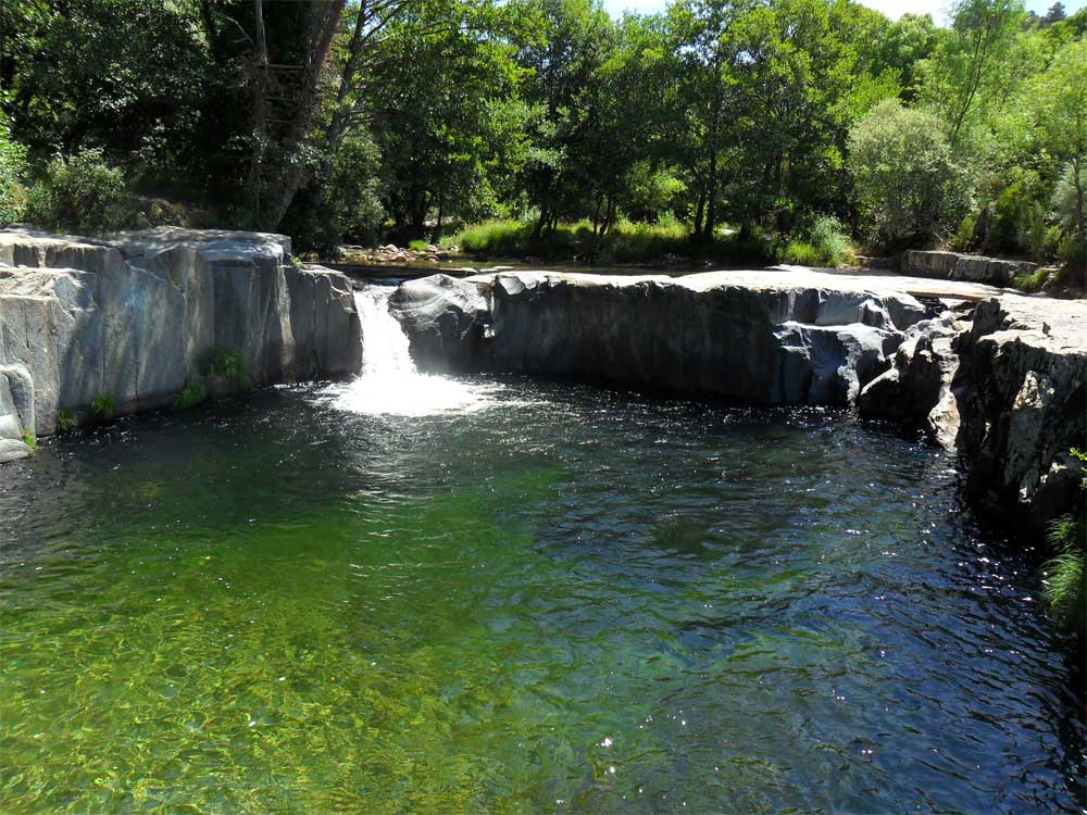 Un oasis de aguas cristalinas, donde el río esculpe un refugio natural de frescor y paz.